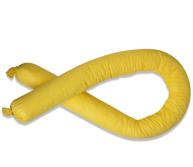 - Polypropylene fibre filled 1.2m long yellow chemical sorbent socks designed to both contain and absorb water, coolant, cutting fluid, hydrocarbons, solvents, acids & alkalis.